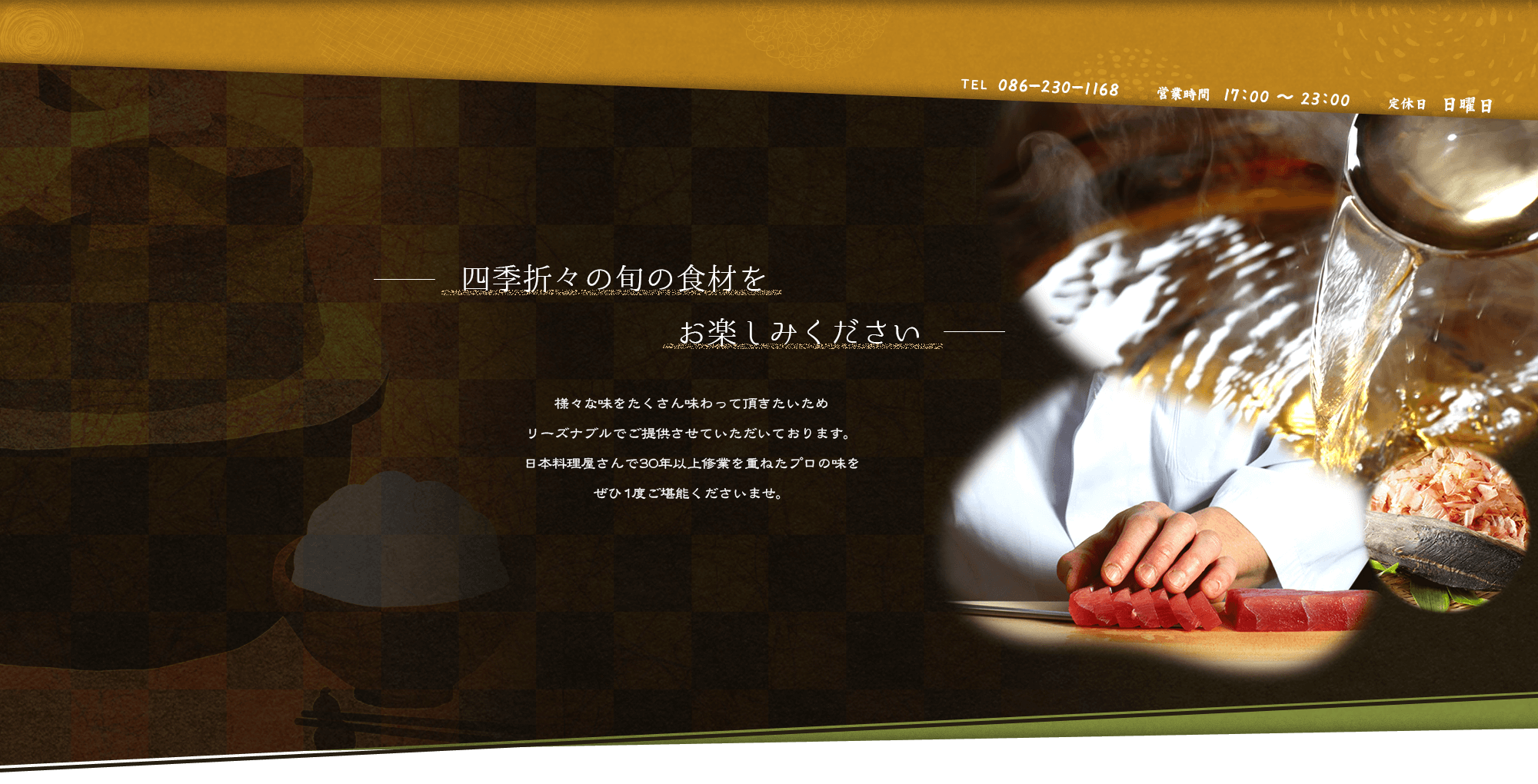 岡山の酒や食材を楽しめる親しみのある日本料理